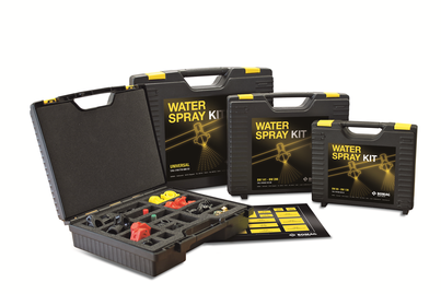 Always ready with the BOMAG water spray kit for tandem rollers, with which you can ensure the maximum operational capability of your machine. The compact case contains BOMAG original sprinkler nozzles, filters, sealing rings and clamps, which can be easily replaced on site. This ensures proper sprinkling of the drum surfaces at all times.