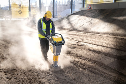 Our electric vibratory plates and BOMAG battery-powered tampers can be supplied with the same battery packs. The battery capacity is perfectly sufficient for an average working day.