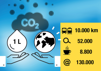reduces CO2 emissions by more than half a tonne over the entire year. And from that, you could then travel almost 10,000 kilometres on public transport or search something on the Internet 52,000 times, or drink 8,800 cups of coffee, or send 130,000 emails or... (Calculation basis: www.konstruktion-entwicklung.de, www.helmholtz.de, 225 working days)