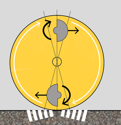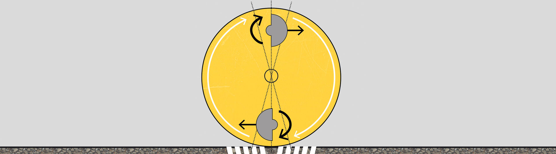 TanGO stands for tangential oscillation. In contrast to conventional oscillation rollers, the unbalanced masses in TanGO are right at the edge, i.e. tangentially arranged to the circumference. Greater leverage means the eccentric weights can be smaller. This clever use of physicx means that TanGO requires considerably less output power than standard oscillation systems. An extensive fild trial has verified the following: TanGO consumes on average 1.1 l/h less fuel than other oscillation rollers.