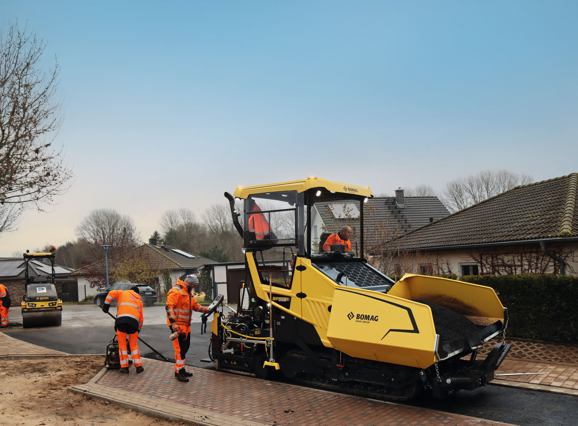 Mit dem BF 350 in Rad- und Kettenversion präsentiert BOMAG einen kompakten City-Fertiger, der Wendigkeit, Einbauqualität und Bedienkomfort perfekt vereint. Das Bedienkonzept myCOCKPIT kombiniert Touchscreen und Joystick für intuitive Steuerung und schnelle Anpassung – auch durch wechselndes Personal. Die ECOMODE-Technologie sorgt für reduzierten Kraftstoffverbrauch und minimierte Lärmemissionen – ideal für den Asphaltbau in sensiblen Stadtbereichen. Dank MAGMALIFE-Heizungstechnologie erreicht die Bohle schnell ihre Betriebstemperatur, was Zeit spart und die Oberflächenqualität erhöht.