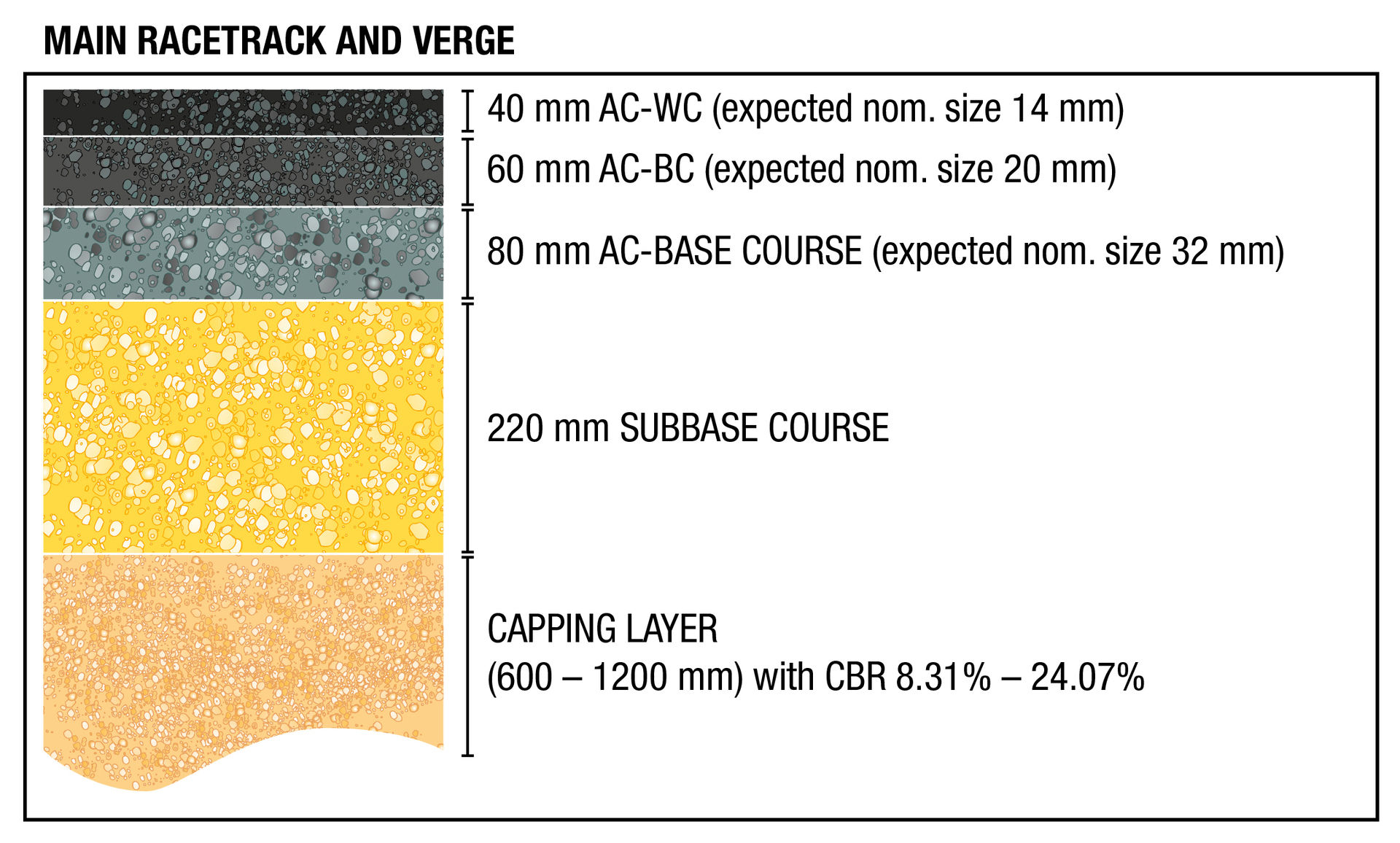 Für den Einbau und die Verdichtung des Asphalts der gesamten Strecke, der Seitenstreifen, Auslaufzonen und Servicestraßen fiel die Wahl auf Maschinen von BOMAG. Die große Herausforderung: Die Piste soll auch in Zukunft allen Anforderungen gerecht werden, der Asphalt dementsprechend auf Langlebigkeit ausgelegt sein. Auch wenn die Strecke an 350 Tagen pro Jahr von normalem Verkehr genutzt wird, muss sie im Anschluss dann immer noch die extrem hohen Geschwindigkeiten von Rennmotorrädern aushalten.