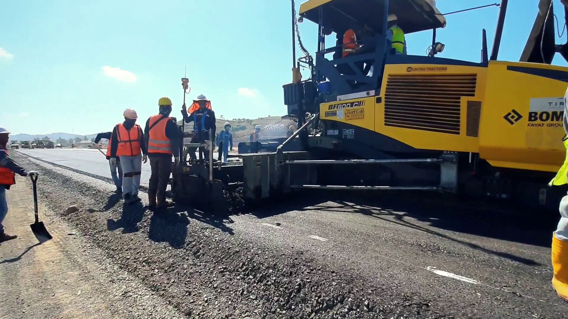 Für den Einbau der Tragschicht waren zwei BOMAG Fertiger BF 800 C im Einsatz. Dank der Kombination aus hoher Produktivität und Flexibilität sind diese Allrounder die optimale Wahl für einen hochwertigen und gleichzeitig effizienten Straßenbau. Ausgerüstet mit innovativen BOMAG Assistenzsystemen und Optionen machen sie dem Fahrer und dem gesamten Einbauteam die Arbeit einfacher. Zum Beispiel mit einem Allwetterschutz, der den Maschinenbediener nicht nur bei Regen, sondern auch bei starkem Sonnenschein schützt. Oder Technologien wie dem BOMAG ECOMODE, einem intelligenten Steuerungssystem, das die Motoren immer im optimalen Bereich hält und so den Benzinverbrauch und den Geräuschpegel reduziert.