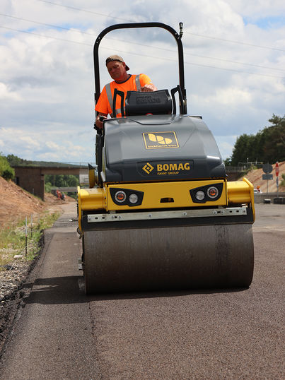 „Wir möchten unseren Kunden helfen, ihre Ziele zu erreichen. Das fängt beim Zuhören an. Was wird tatsächlich benötigt? Was muss die Maschine können?“, erklärt Sebastian Kölzer, Produktmanager für leichte Tandemwalzen bei BOMAG. „Das Ergebnis ist hier eine Tandemwalze, die beim Walzen auf Gussasphalt mit Leichtigkeit überzeugt und für ein hochwertiges Splittbild sorgt.