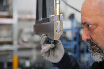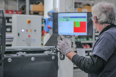 Las reglas de las extendedoras se fabrican directamente en la planta de BOMAG en Alfonsine. Antes del montaje se verifica que el sistema de calefacción funcione sin errores y que la temperatura máxima indicada se alcance de forma segura.